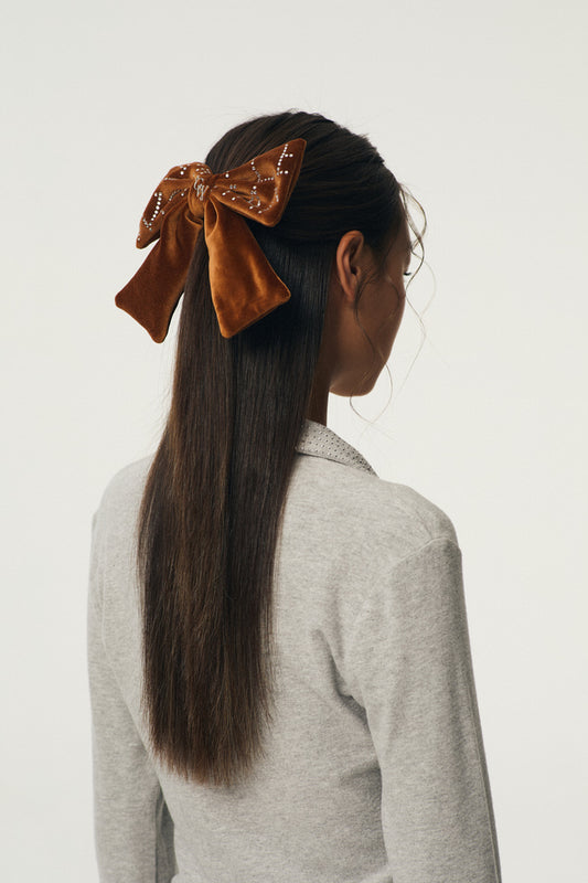Velvet Ribbon Hair Clip : Brown