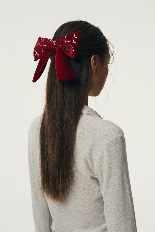 Velvet Ribbon Hair Clip : Red